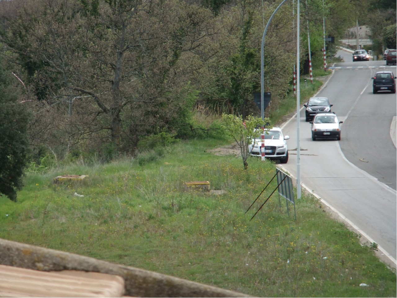 "...Rispetto alla direzione centro città - periferia, al margine destro della carreggiata non vi è marciapiede in rilevato ma solo ciglio erboso sul quale insistono pali dell'illuminazione pubblica distanti dal nastro di asfalto mediamente di circa un metro.."