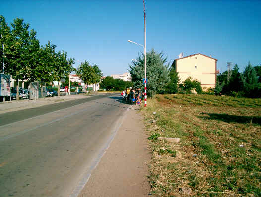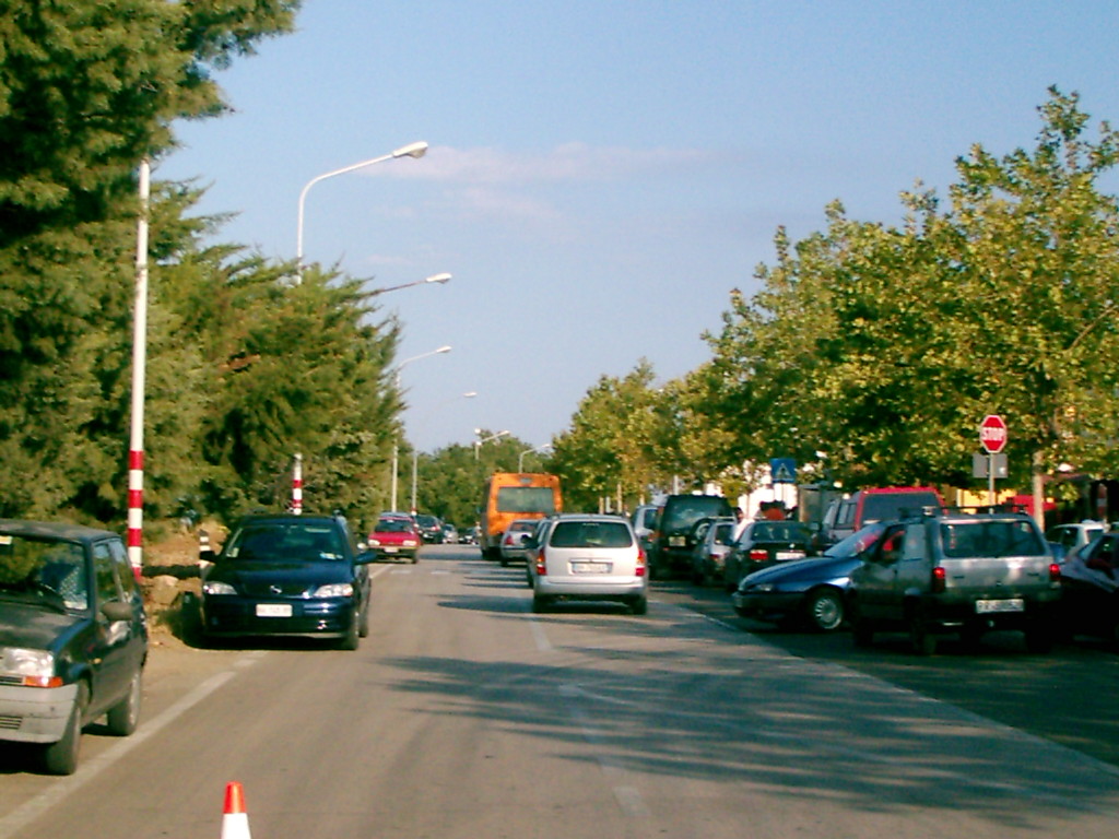Rispetto alla direzione centro città - periferia, al margine destro della carreggiata non vi è marciapiede in rilevato ma solo ciglio erboso sul quale insistono pali dell'illuminazione pubblica distanti dal nastro di asfalto mediamente di circa un metro.