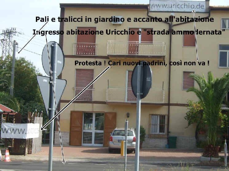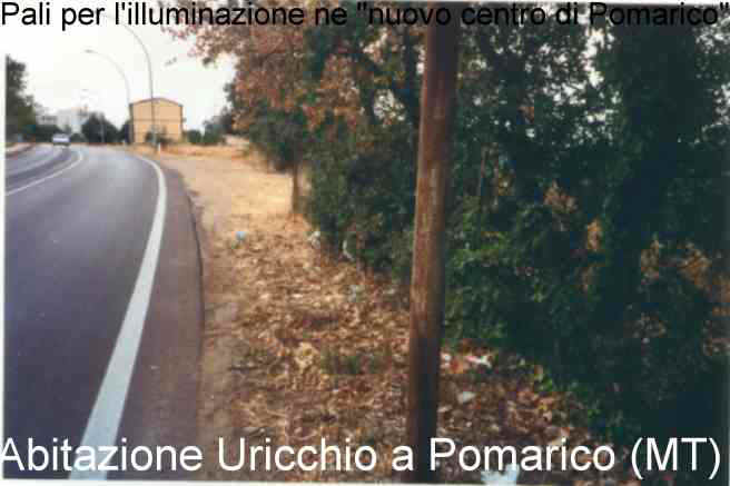 In basso vedete l'abitazione della famiglia Uricchio a Pomarico e uno dei tanti pali arrugginiti per l'illuminazione pubblica della Strada ammodernata.