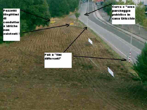 La foto in alto: Il punto di sconfinamento e' stato segnato dal CTU (Consulente Tecnico d'Ufficio),