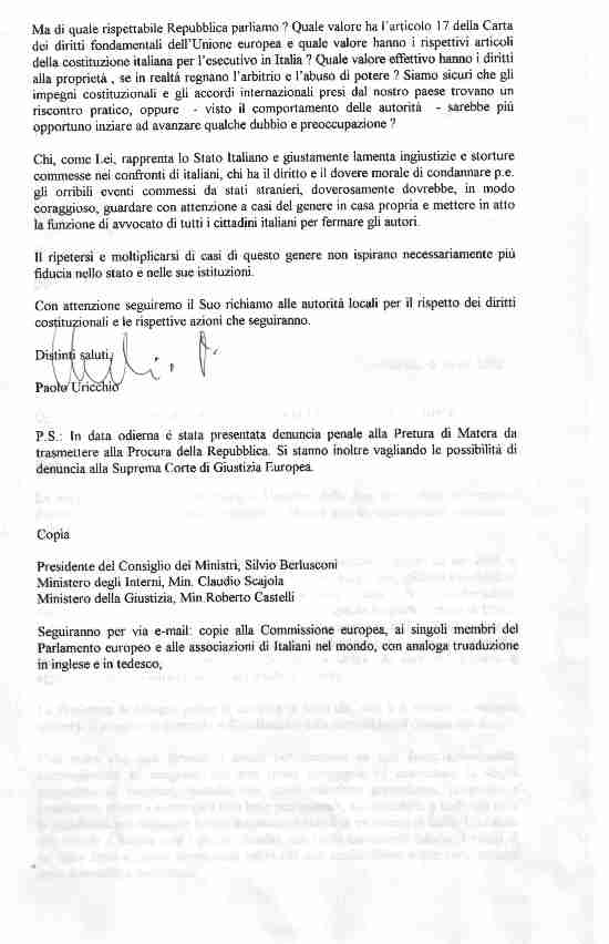 Denuncia, lettera alla Presidenza della Repubblica, Seite 2 - ital.