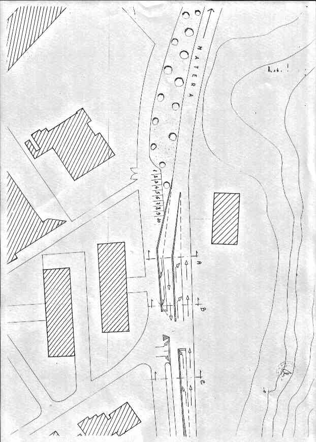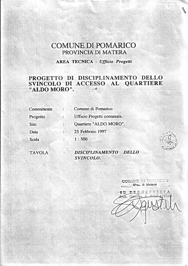 Nota bene: A destra della strada è la casa della famiglia URICCHIO. Come si evince da questo piano, la distanza dalla casa al ciglio stradale è ridotta a pochi metri. Un marciapiede oppure altre strutture pubbliche non si vedono sul piano, anzi la strada è stata costruita in giardino. Il tecnico che ha eseguito il piano e l'architetto Pignatelli di Pomarico. Quest'altro tecnico comunale, insieme al geometra (tecnico comunale) Epifania Pasquale - giostrano il Comune a modo loro - e nessuno li ferma !