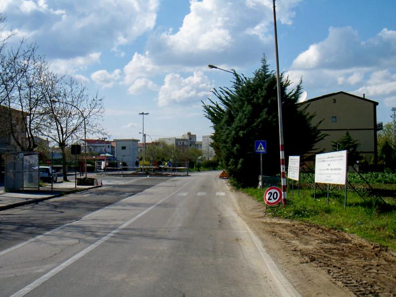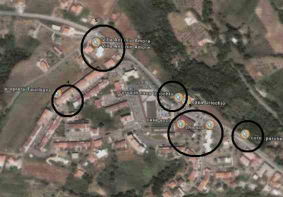 (guardate l'ingresso di casa della Famiglia Uricchio sulla Strada Provinciale ammodernata, i cartelli di protesta, le case sociali con il parcheggio sotto casa, il chiosco per l'amico del Sindaco Nicola Raucci e i pali fatti verniciare dal Sindaco Nicola Raucci per la sicurezza stradale !)